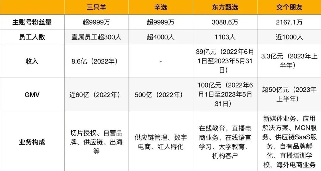 對(duì)比來(lái)看,三只羊聚焦于切片授權(quán)、自營(yíng)品牌塑造、供應(yīng)鏈優(yōu)化及海外市場(chǎng)的拓展;辛選則強(qiáng)化供應(yīng)鏈管理,深耕數(shù)字電商領(lǐng)域,并致力于紅人孵化;而東方甄選則布局了在線教育、直播電商、在線語(yǔ)音學(xué)習(xí)、大學(xué)教育及機(jī)構(gòu)客戶服務(wù)等多元化業(yè)務(wù)。