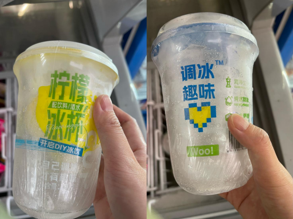 像農(nóng)夫山泉推出專門的冰杯單品,便利蜂、7-11、羅森等便利店紛紛上線了帶有自家LOGO的冰杯,線下飲品店如蜜雪冰城也可單點(diǎn)冰杯。