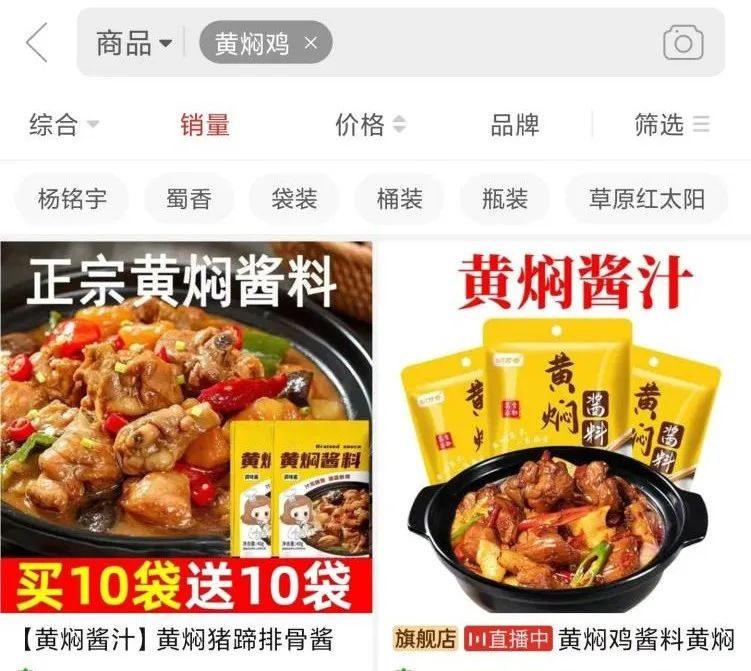 另一方面,為了賦予黃燜雞方便便捷的功能,市場上出現(xiàn)了大量的黃燜雞預(yù)制菜品。在抖音、拼多多等平臺上,可以搜索到大量的黃燜雞預(yù)制菜品。這些菜品只需用微波爐加熱一下即可食用,雖然方便快捷,但口感和新鮮度卻大打折扣。