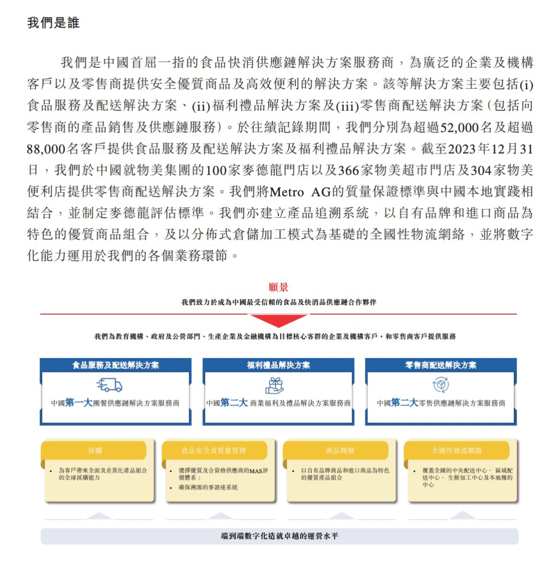 據(jù)招股書,截至2023年年末,公司共向物美集團(tuán)的100家麥德龍門店、366家物美超市門店和304家物美便利店提供零售商配送服務(wù)。