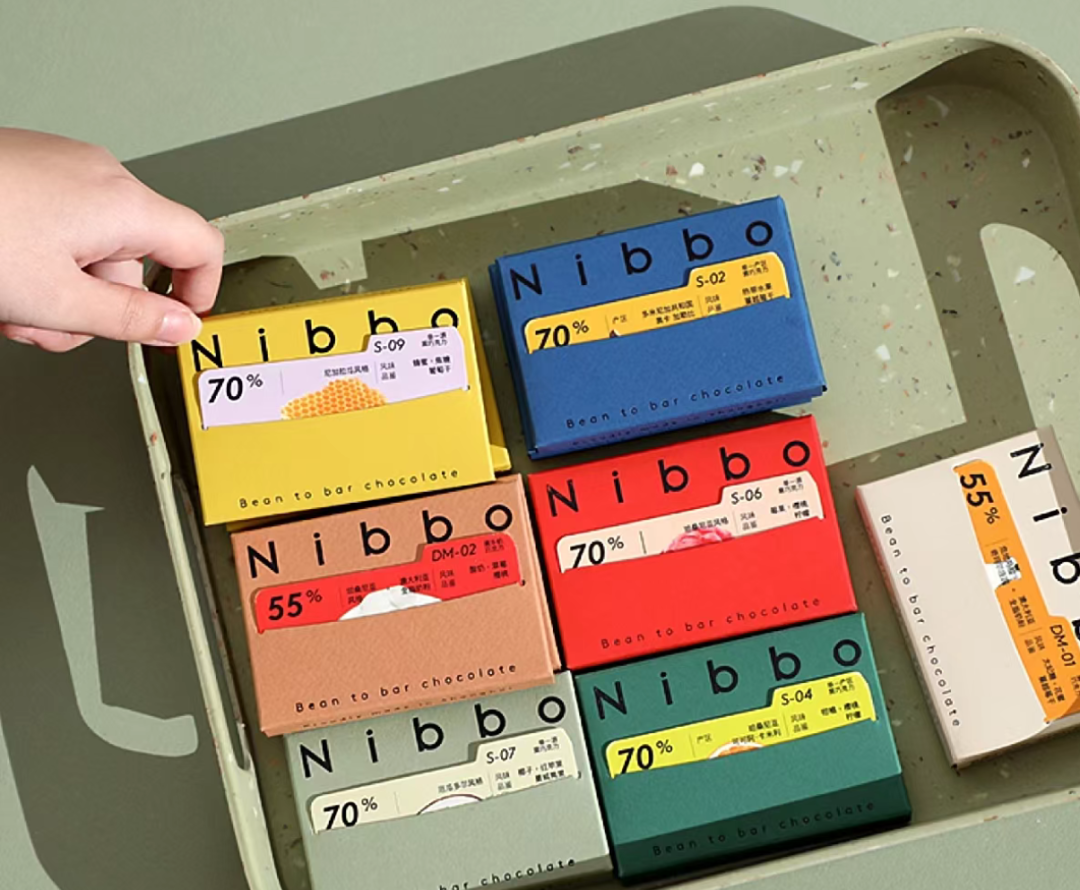 像上海的網(wǎng)紅精品巧克力店Nibbo,給每份巧克力附贈(zèng)上一張“風(fēng)味卡片”,介紹可可的產(chǎn)地、風(fēng)味以及類型,多巴胺配色的精美卡片,讓“收藏愛好者”們心動(dòng)不已。