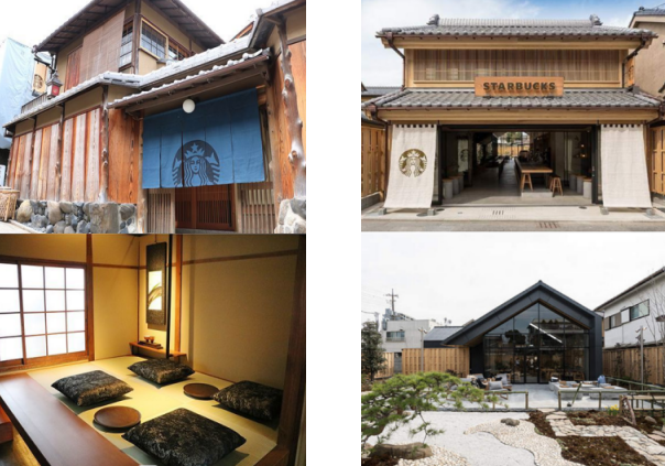 左圖為開在京都一座百年老屋里的星巴克店;