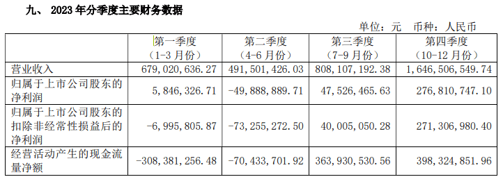 對于2024年上半年預(yù)計(jì)仍舊虧損的主要原因,香飄飄在公告中表示,主要是因?yàn)闆_泡業(yè)務(wù)處于銷售淡季。從2023年財(cái)報(bào)來看,淡季、旺季對香飄飄主營業(yè)務(wù)的影響確實(shí)比較明顯。2023年香飄飄四個(gè)季度的營收分別為6.79億元、4.92億元、8.08億元、16.47億元,歸屬于上市公司股東的凈利潤分別為584.63萬元、-4988.89億元、4752.65億元、2.77億元。