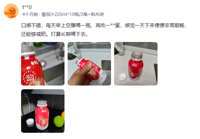 一個品類一旦沾了點(diǎn)保健功效,要么身價翻番、要么購買粘性提升。番茄汁的功效很多元,開胃、潤腸通便、抗氧化這些功效都非常契合年輕消費(fèi)者的需求,這也成為了產(chǎn)品高復(fù)購的保證。