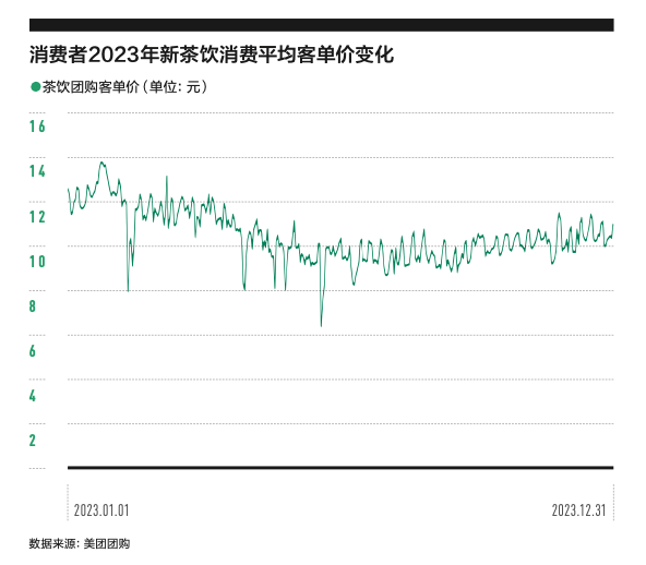 平價(jià)消費(fèi)席卷餐飲業(yè)在茶飲市場(chǎng),客單價(jià)下調(diào)的趨勢(shì)也是勢(shì)不可擋。據(jù)美團(tuán)團(tuán)購(gòu)統(tǒng)計(jì),2023年全國(guó)茶飲消費(fèi)客單價(jià)均值為10.5元。