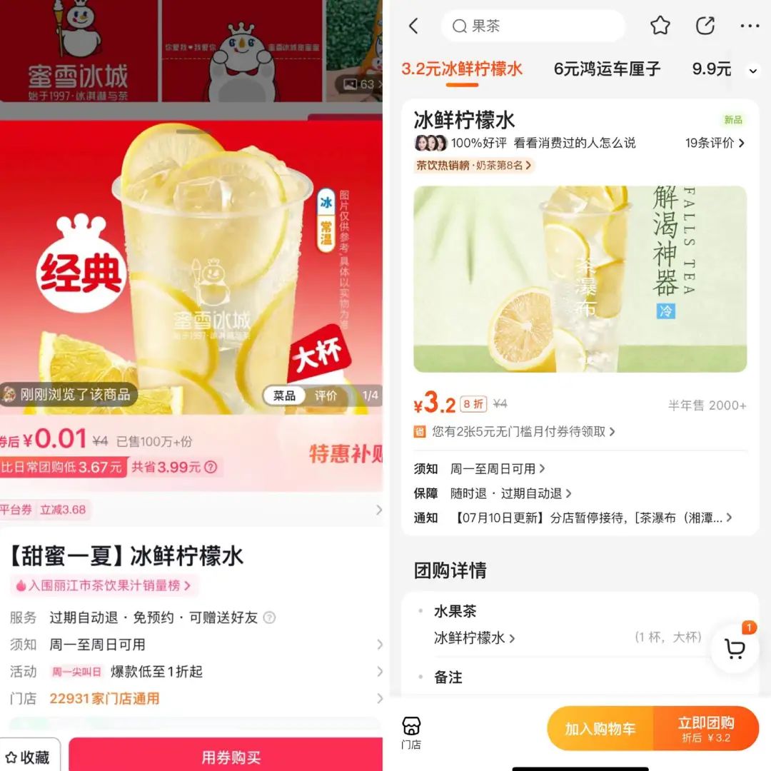 各茶飲激戰(zhàn)檸檬水,低至0.01元/杯
