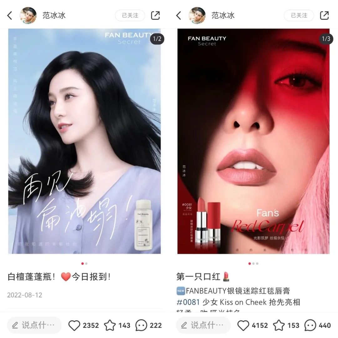 足夠的話題度,既可以看作是她不斷的復(fù)出試探,也可以看作是她在用話題度維持品牌的銷量:微博上,范冰冰有著近6300萬粉絲,而在小紅書上,范冰冰有著1657萬粉絲,是當(dāng)之無愧的頭部博主。