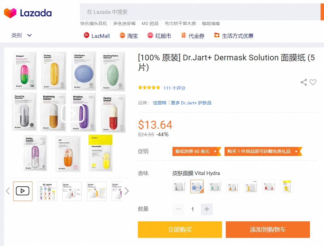 相較于歐美市場,東南亞市場產(chǎn)品價格偏低,消費者也會對價格更敏感,而在東南亞市場,美妝和護膚產(chǎn)品的競爭也同樣激烈。Lazada顯示,韓國蒂佳婷面膜五片的售價在13.64新加坡元(約合人民幣73.5元),其他眾多品牌的面膜,定價也比FAN BEAUTY更低。
