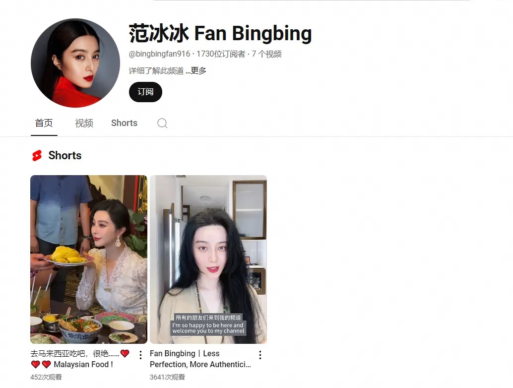 TikTok之外,被不少人忽視的是,范冰冰幾乎在同時帶著品牌入駐了YouTube,一邊經(jīng)營著個人賬號,一邊現(xiàn)身為品牌鋪路。