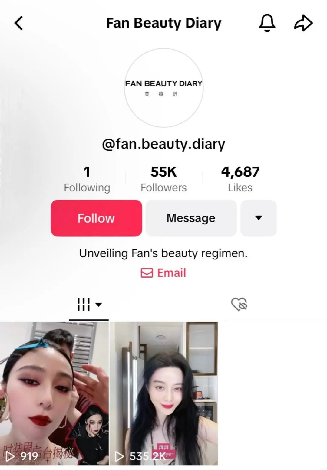 上揚眼線、紅唇、白到曝光過度的皮膚,范冰冰帶著自己的標(biāo)志性妝容出現(xiàn)在TikTok上,宣傳著自創(chuàng)品牌FAN BEAUTY正式入駐TikTok。