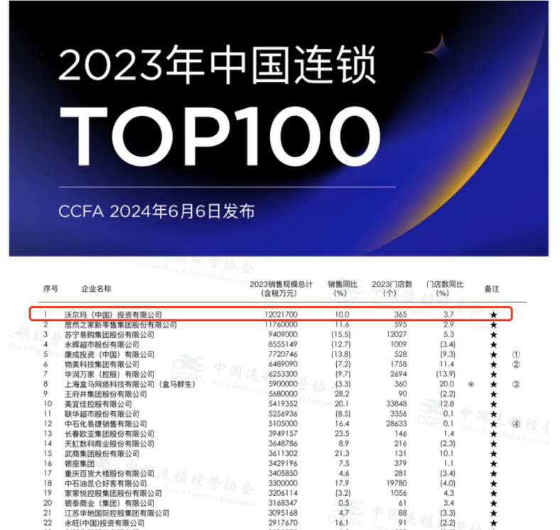 沃爾瑪成為最新的中國連鎖零售老大 圖源:中國連鎖經(jīng)營協(xié)會(huì)(CCFA)