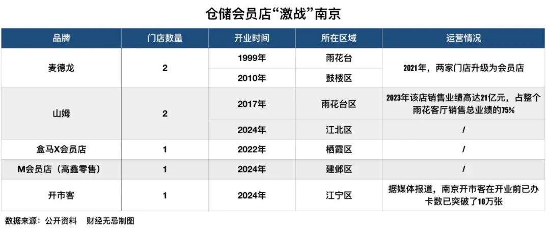 據(jù)「財(cái)經(jīng)無忌」不完全統(tǒng)計(jì),截至目前,南京已擁有7家倉儲(chǔ)會(huì)員店,這之中除了山姆外,既有在南京開了20余年的麥德龍、高鑫零售旗下M會(huì)員、盒馬X會(huì)員店等本土?xí)䥺T店。