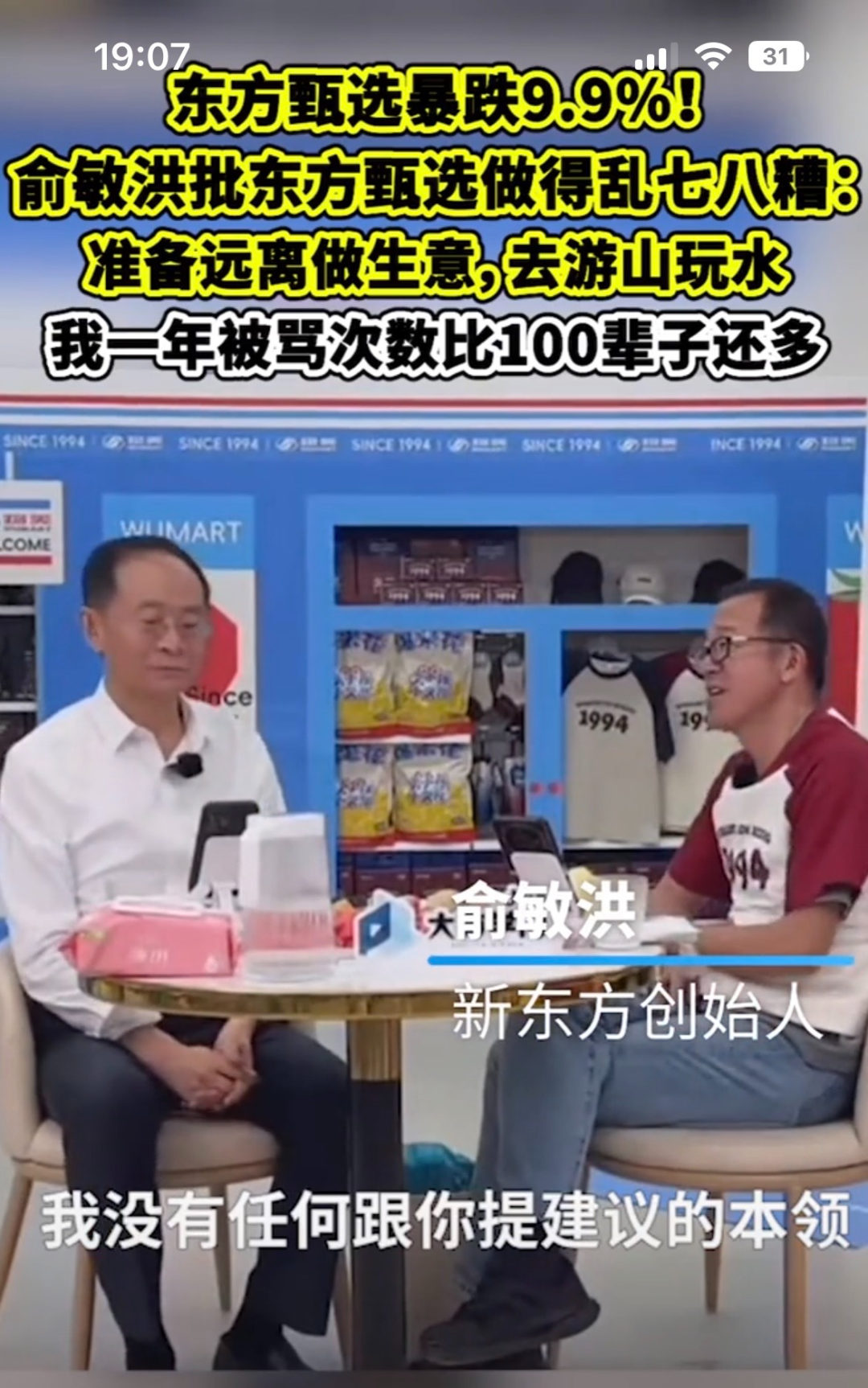 隨后,許久未曾露面的俞敏洪在物美創(chuàng)始人張文中的直播間中直呼,“東方甄選現(xiàn)在做得亂七八糟”。