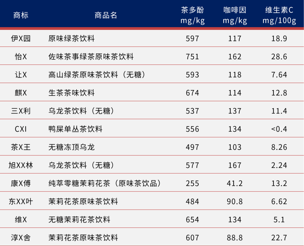 另外,根據(jù)《消費者報告》對市場上在售的12款無糖茶飲有益成分含量數(shù)據(jù)檢測結果統(tǒng)計。