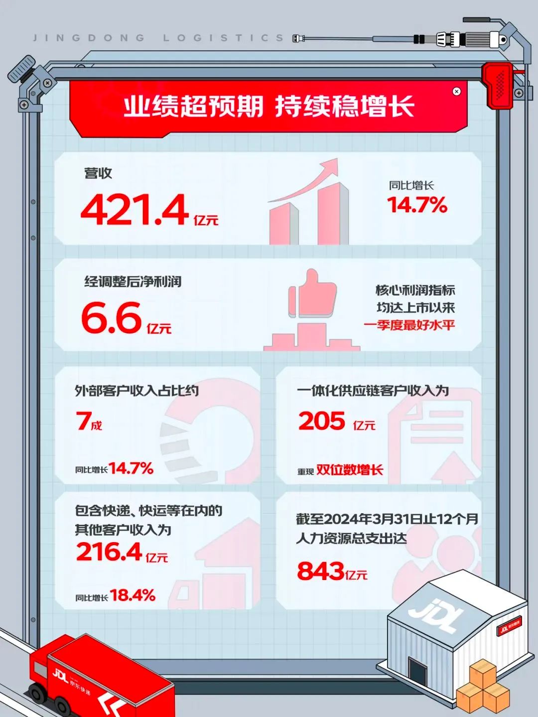 得益于以上布局,京東物流在2024年第一季度,實(shí)現(xiàn)了來(lái)自其他客戶(包括快遞、快運(yùn)等核心業(yè)務(wù))的收入大幅增長(zhǎng),總額高達(dá)216.4億元,同比增幅達(dá)到18.4%。