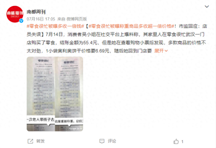 當(dāng)?shù)厥袌霰O(jiān)督管理局調(diào)查后向“南都·灣財(cái)社”表示,重量誤差均為0.115kg,是門店店員不小心將其他東西放在秤上導(dǎo)致的失誤,已經(jīng)要求涉事門店進(jìn)行內(nèi)部管理,杜絕此類事情發(fā)生。但是對于這件事,零食很忙方面暫時(shí)沒有回復(fù)。