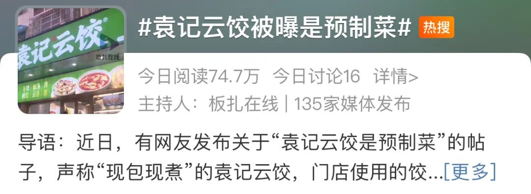 起因是網(wǎng)友發(fā)現(xiàn)主打“現(xiàn)包現(xiàn)做”的袁記云餃竟是預(yù)制菜,其門(mén)店使用的餃子皮和豬肉餡為凍品。
