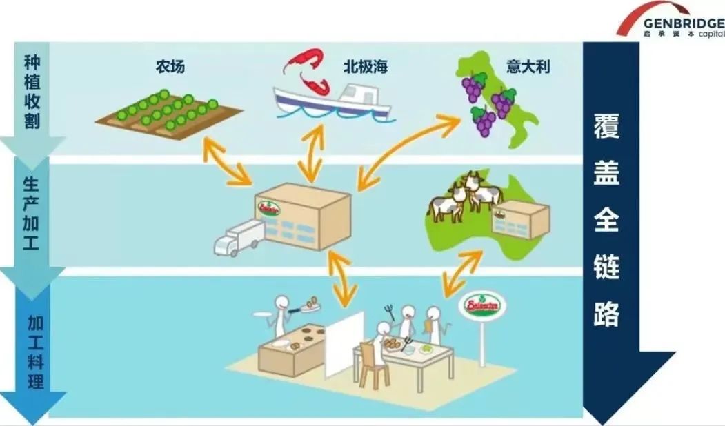 根據(jù)啟承資本的研究,薩莉亞是餐飲行業(yè)中的SPA,即從零售到生產(chǎn)垂直整合的模式。