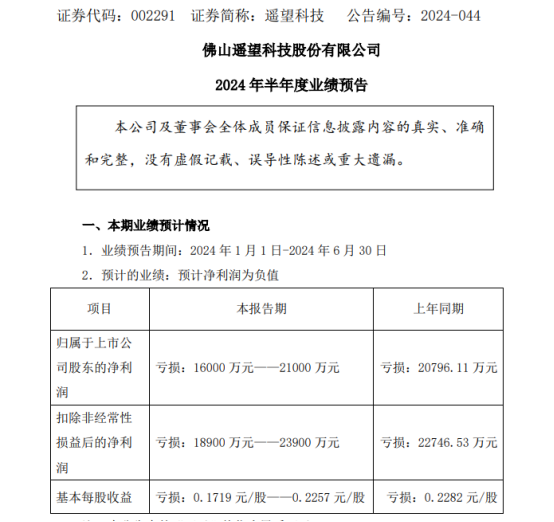 但在這一片繁榮之下,遙望科技卻陷入了營收越多,虧得越多的怪圈。據(jù)遙望科技交出的2024年半年度業(yè)績預(yù)告,歸屬于上市公司股東的凈利潤虧損達(dá)1.6億元-2.1億元,扣除非經(jīng)常性損益后的凈利潤虧損為1.89億元-2.39億元,基本每股收益虧損達(dá)0.1719 元/股-0.2257 元/股。
