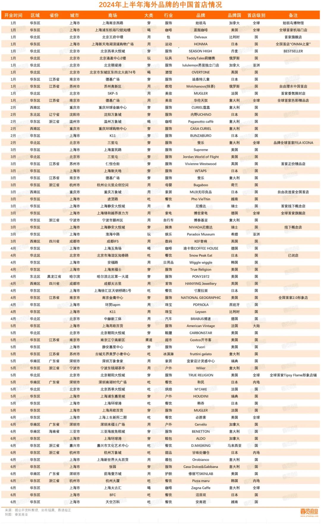 2024上半年,品牌明顯加快了首店布局的步伐。