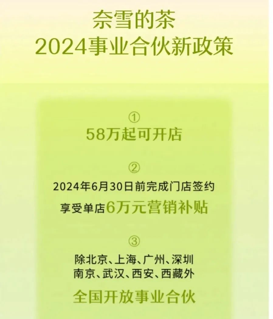 2023年7月20日,奈雪的茶正式推出“合伙人計(jì)劃”,放棄了“直營(yíng)驕傲”,宣布進(jìn)入門(mén)店加盟時(shí)代,進(jìn)軍下沉市場(chǎng)。