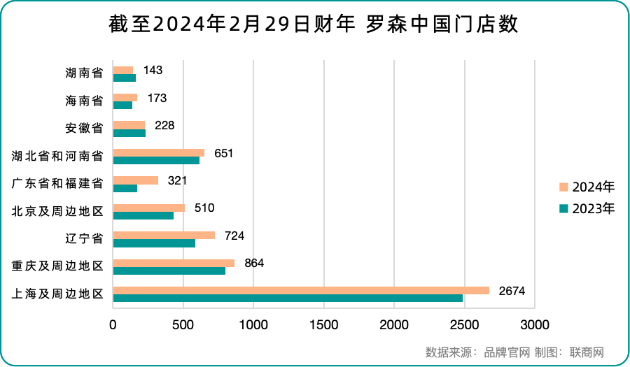 具體到中國(guó)市場(chǎng),門(mén)店總數(shù)達(dá)6335個(gè),約占羅森海外店鋪總數(shù)的86%。上一財(cái)年,國(guó)內(nèi)羅森數(shù)量首次突破6000的門(mén)檻,并且同比凈增668家。其中,湖南省凈減17家門(mén)店,安徽省凈減3家門(mén)店,其他地區(qū)均實(shí)現(xiàn)同比增加,江浙滬、廣東、遼寧增速更為突出。