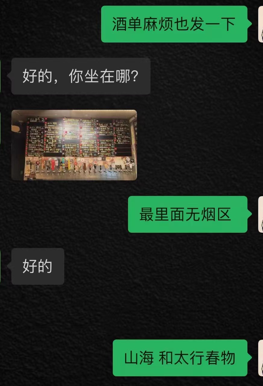 距離下班還有半個(gè)多小時(shí),沈渝(化名)提前給常去的精釀酒吧老板發(fā)去微信,預(yù)留一個(gè)無(wú)煙區(qū)的位置,順便看一下今日酒單。