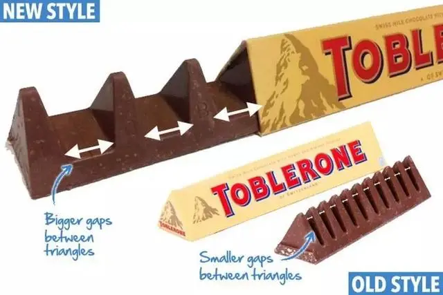 2014年,應(yīng)用經(jīng)濟(jì)學(xué)家查克爾和巴拉格塔斯的研究表明,消費(fèi)者對(duì)產(chǎn)品價(jià)格的敏感度大概是對(duì)產(chǎn)品大小敏感度的4倍。這意味著,相對(duì)于直接漲價(jià),選擇減少產(chǎn)品分量更不容易被消費(fèi)者發(fā)現(xiàn)。而基于這一理論出現(xiàn)的“變相漲價(jià)”案例,還有著名的瑞士山峰巧克力(Toblerone)相鄰的“山峰”間距越來(lái)越大,易拉罐裝的可口可樂(lè)容量從355毫升減少到330毫升。