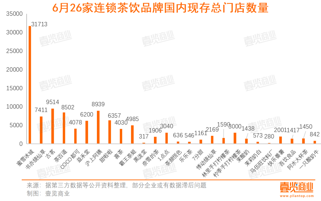 從整體開店數(shù)量來看,國(guó)內(nèi)26家連鎖茶飲品牌一共新開門店3751家,現(xiàn)存門店一共114095家。