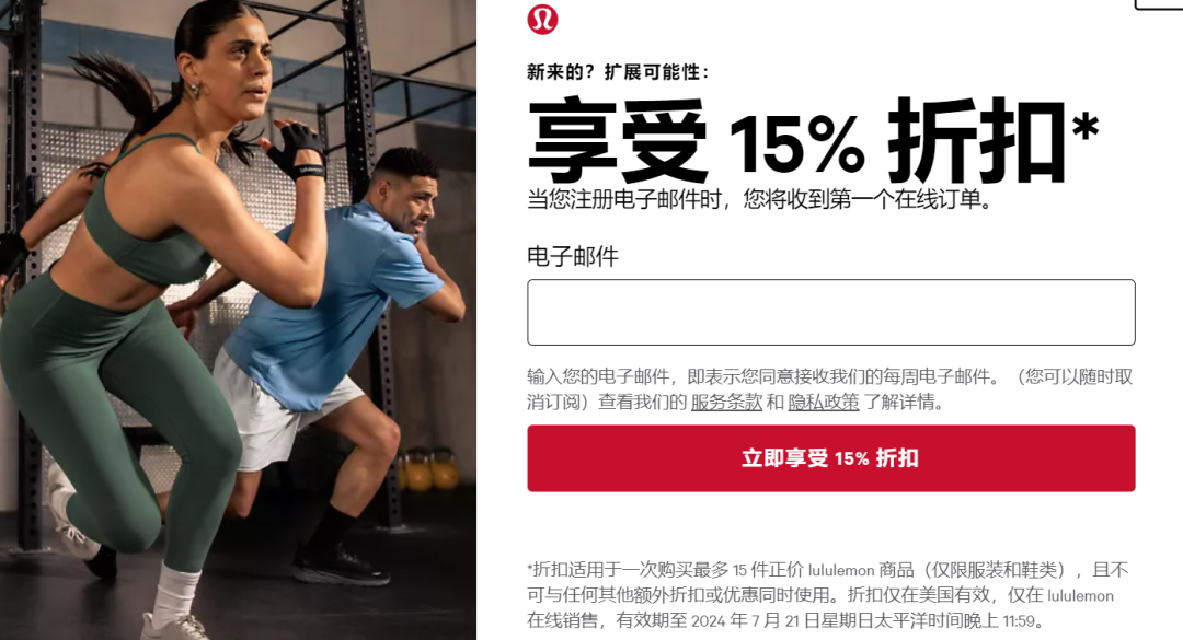 于是,越來(lái)越多的平替品牌用著Lululemon的供應(yīng)鏈,畫(huà)出了Lululemon日漸走低的增速曲線。而將兜售價(jià)值觀視為核心業(yè)務(wù)的管理層,環(huán)顧四周尚未找到趁手武器,只能通過(guò)在線折扣、滿減、代金券等形式包裝,給自己的高貴留下一絲體面。
