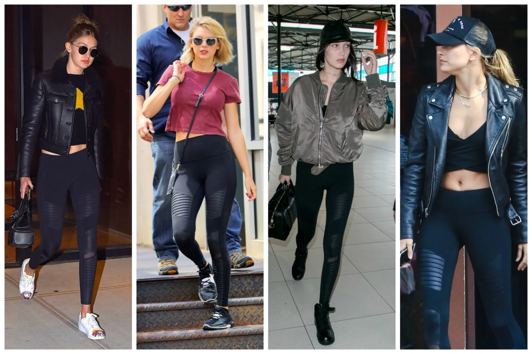 吉吉·哈迪德、貝拉·哈迪德、海莉·鮑德溫和泰勒·斯威夫特紛紛穿上 Alo Yoga 的黑色摩托緊身褲上街