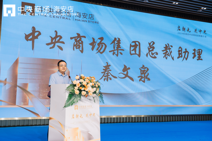中央商場集團(tuán)總裁助理秦文泉先生上臺致辭,對海安中央商場項目給予了充分肯定,闡述了中央商場集團(tuán)的雄厚實力。中央商場集團(tuán)深耕江蘇、輻射全國,始終秉承著行業(yè)一流連鎖品牌,做基業(yè)長青百年“中央”的戰(zhàn)略發(fā)展目標(biāo),持續(xù)完善升級,求變創(chuàng)新,以繁榮城市商業(yè)為第一要務(wù),提升城市商業(yè)新勢能,將美好生活帶到消費者身邊。不負(fù)城市期待,與美好的海安共成長。