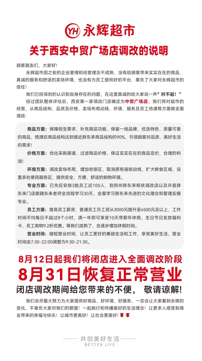 永輝全國(guó)首家自主調(diào)改門(mén)店即將閉店調(diào)改