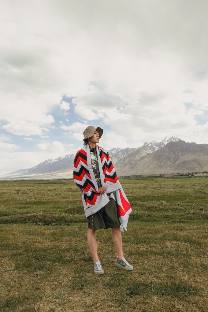 “水哥”王昱珩、Mandarin樂隊(duì)吉他手肖駿及鼓手安雨身著Walk Gently系列在風(fēng)云之下、山川之間,感受瞬息變化,一步一步在大地上詩(shī)意行走。王昱珩的“鬼才之眼”洞察著世間萬物,肖駿和安雨與韻律和節(jié)拍結(jié)伴,聆聽自然的心跳。此時(shí)此刻,靈魂與腳下的土地深深聯(lián)結(jié)。