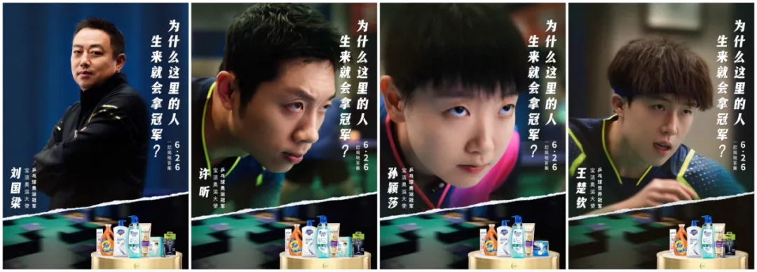在集團(tuán)策略指引下,寶潔旗下30多個(gè)品牌也紛紛推出以?shī)W運(yùn)為靈感的營(yíng)銷和店內(nèi)活動(dòng)。而寶潔中國(guó)一口氣簽約劉國(guó)梁、許昕、孫穎莎、王楚欽4位國(guó)乒冠軍成為寶潔奧運(yùn)大使,共同拍攝“冠軍決于日常”奧運(yùn)大片。