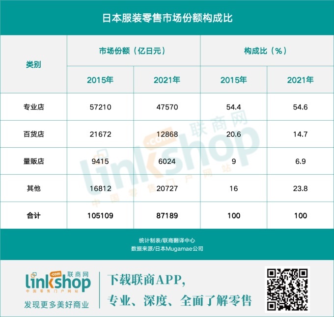 從日本服裝零售市場的數(shù)據(jù)變化中,我們可以看到綜合超市的服裝業(yè)務(wù)的現(xiàn)狀。