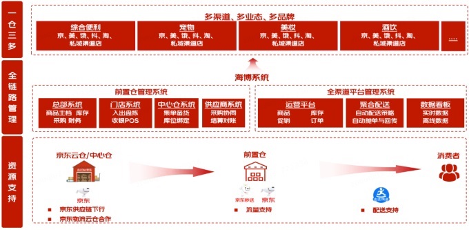 海博系統(tǒng)是京東秒送自主研發(fā)的中臺(tái)系統(tǒng),集商品、營(yíng)銷(xiāo)、履約、配送、采購(gòu)、中心倉(cāng)、數(shù)據(jù)七大賦能模塊于一體,為商家提供全渠道、全鏈路數(shù)字化解決方案。海博系統(tǒng)能夠一套系統(tǒng)對(duì)接多個(gè)線上渠道,打通全渠道數(shù)據(jù)實(shí)現(xiàn)全渠道聚合管理,并將人工操作變?yōu)樽詣?dòng),全流程系統(tǒng)化、數(shù)據(jù)化、標(biāo)準(zhǔn)化,實(shí)現(xiàn)多平臺(tái)庫(kù)存的實(shí)時(shí)同步與精準(zhǔn)管理,有效減少多賣(mài)、超賣(mài)問(wèn)題的同時(shí)提升庫(kù)存管理的效率。