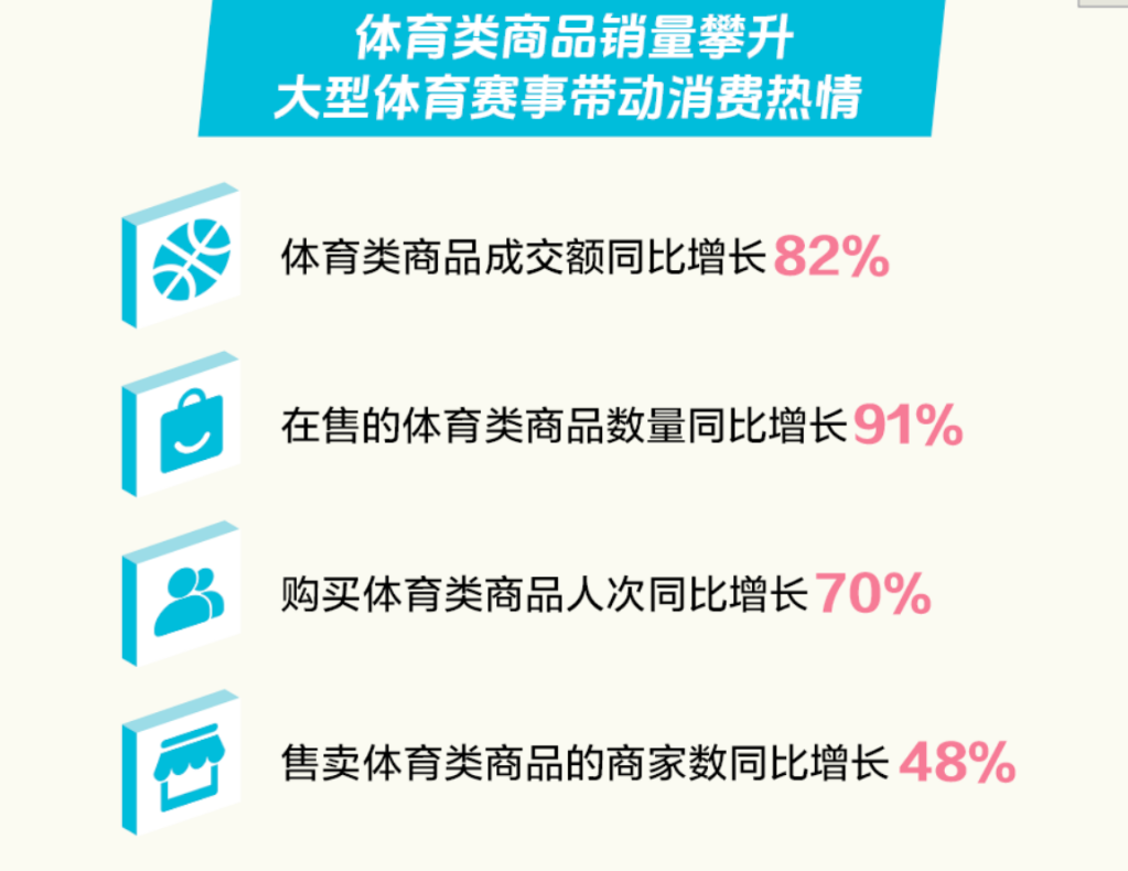 尤其是受到今年眾多高規(guī)格體育賽事的影響,大眾對(duì)體育消費(fèi)的整體需求上升,運(yùn)動(dòng)品類消費(fèi)高速增長(zhǎng)。