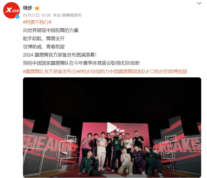 而在今年巴黎奧運(yùn)會(huì),霹靂舞首次被列為正式的奧運(yùn)項(xiàng)目;國(guó)產(chǎn)運(yùn)動(dòng)品牌特步,早早就“鎖定”了中國(guó)國(guó)家霹靂舞隊(duì),成為霹靂舞中國(guó)國(guó)家隊(duì)的官方鞋服贊助商。