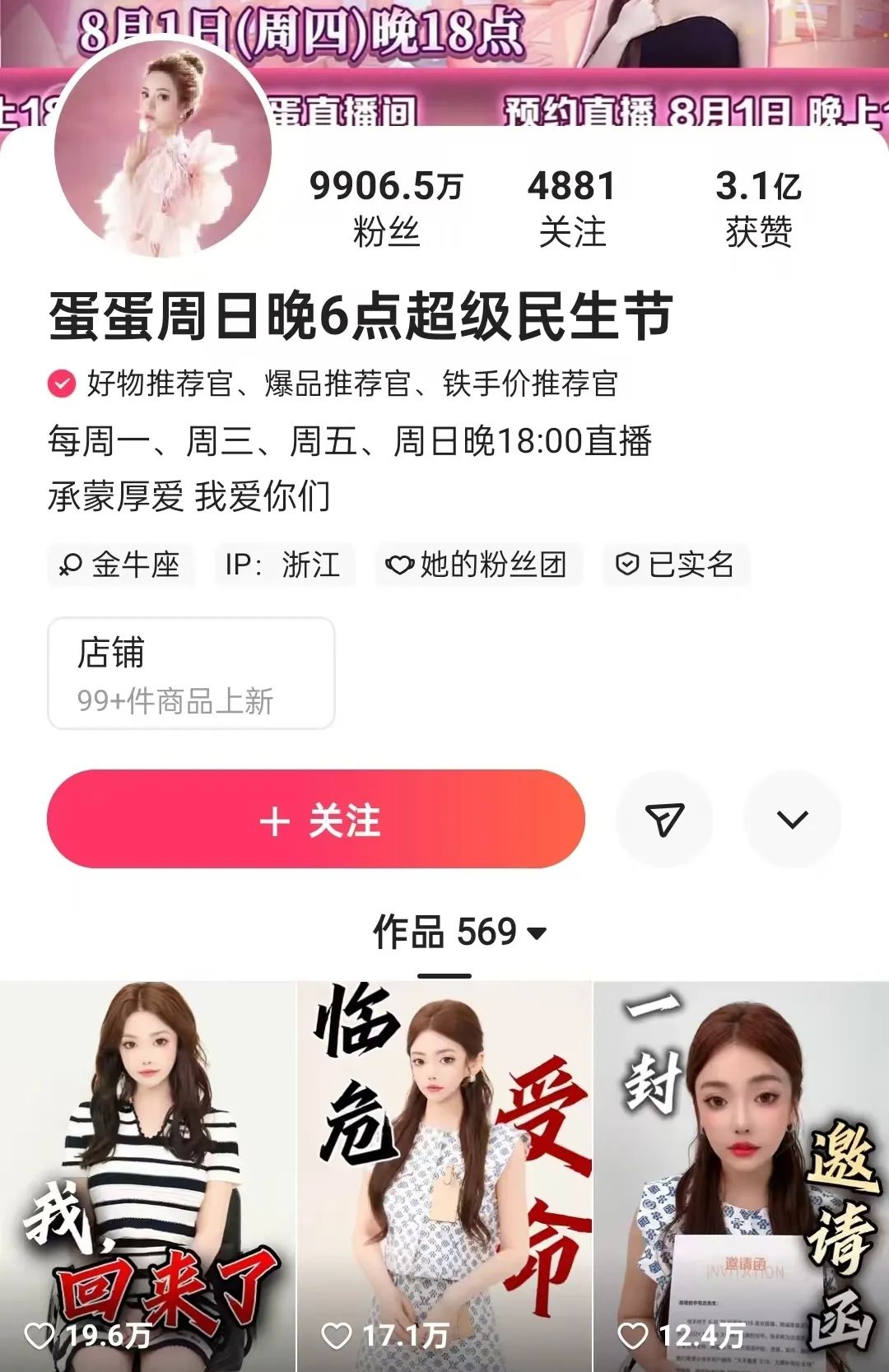 今年5月,辛選還宣布蛋蛋將沖刺9900萬(wàn)粉絲量,并朝著億級(jí)粉絲量的目標(biāo)進(jìn)發(fā)。