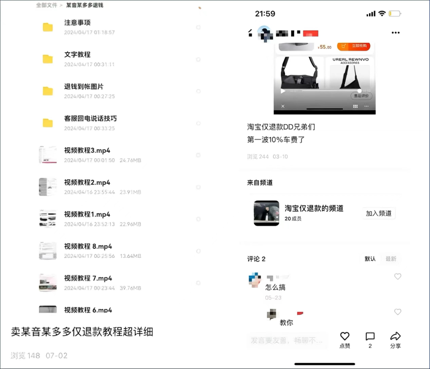 另一種則是,將平臺賦予的權益打磨成“賺錢機器”,有組織、有紀律地在各大平臺對外售賣“薅羊毛”教程,以所謂的“經(jīng)營”為己任,讓個人投機者壯大為團伙,進而做大“惡意退款”黑產(chǎn)。