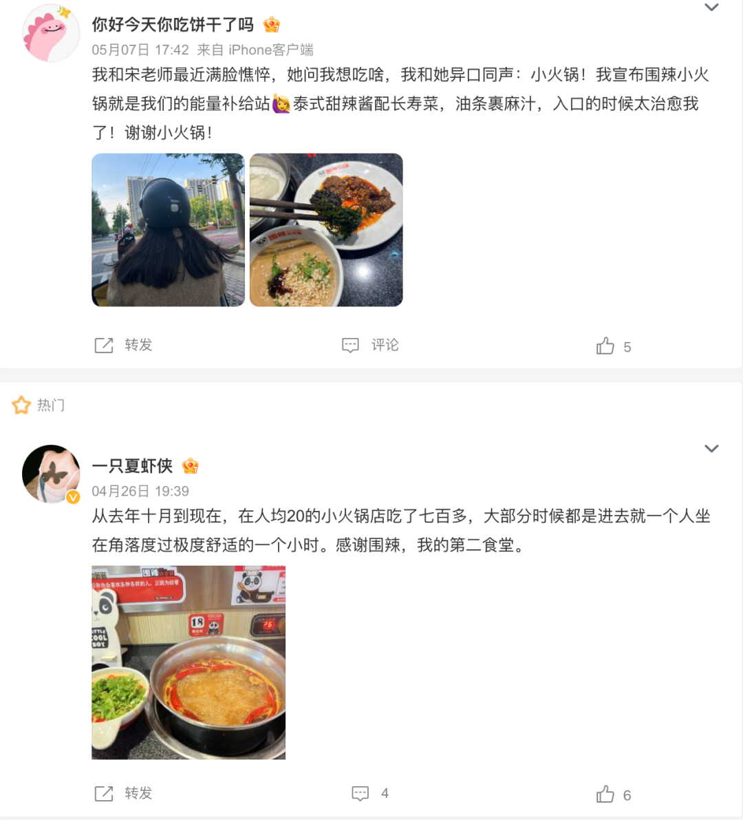 打工人在各個(gè)社交平臺(tái)表達(dá)著對(duì)小火鍋的喜愛(ài),“簡(jiǎn)直是I人天堂,一個(gè)人進(jìn)去吃可以度過(guò)極度舒適的1小時(shí)”、“是我們的能量補(bǔ)給站”、“人均20的小火鍋我吃了700多元,太治愈了,感謝小火鍋!”