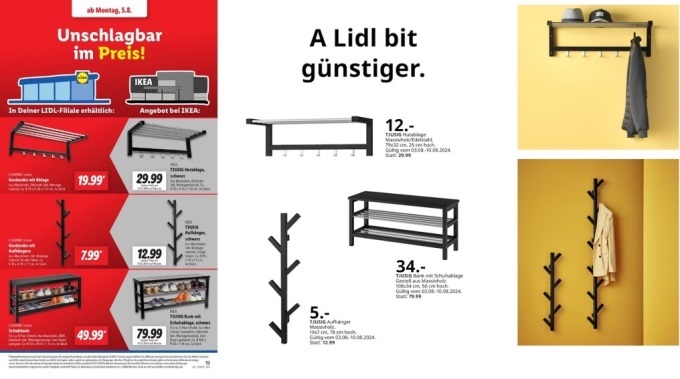 聯(lián)商快訊:本周,德國折扣超市巨頭Lidl 以“價格無可匹敵”(Unschlagbar im Preis)為口號,對家居巨頭宜家發(fā)起了一波引人注目的攻勢。這家折扣零售商公布了帽架、衣帽架和鞋凳的價格對比海報:將自家產(chǎn)品與宜家的類似產(chǎn)品并列比較,突出價格差異。
