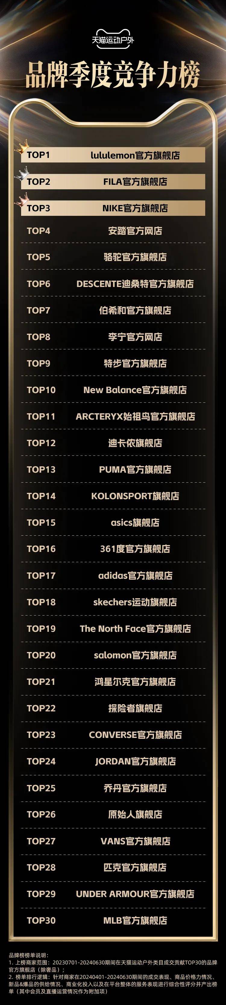 天貓運(yùn)動(dòng)戶外行業(yè)Q2季度品牌競(jìng)爭(zhēng)榜總榜
