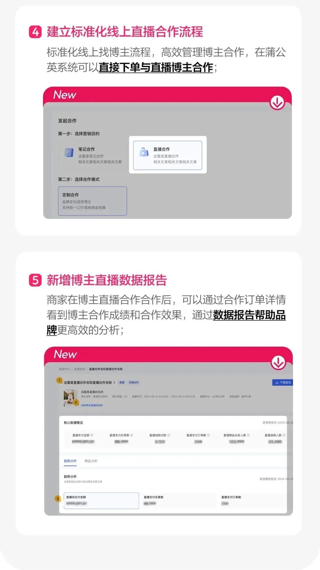 首先,在蒲公英系統(tǒng)的功能升級方面,商家現(xiàn)在可以通過該系統(tǒng)向所有博主發(fā)出直播合作邀請。