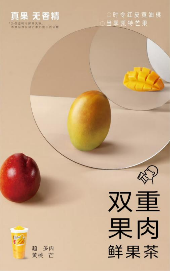 其中超多肉黃桃芒是立秋當(dāng)天上新的新品,首日銷(xiāo)量超40萬(wàn)杯。超多肉黃桃芒延續(xù)了喜茶超多肉系列產(chǎn)品靈感,選用兩種時(shí)令水果——黃油桃及芒果,雙層果肉結(jié)構(gòu)帶來(lái)果肉感豐富飽滿的體驗(yàn)。搭配優(yōu)選梔雀茶葉,由源自四川雅安的梔子綠茶和福建福鼎的炒青綠茶拼配而成,入口花香茶香飽滿,滋味醇和清甜。