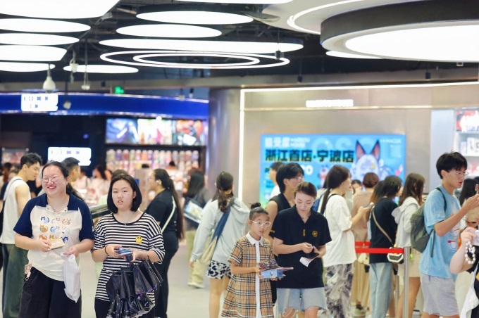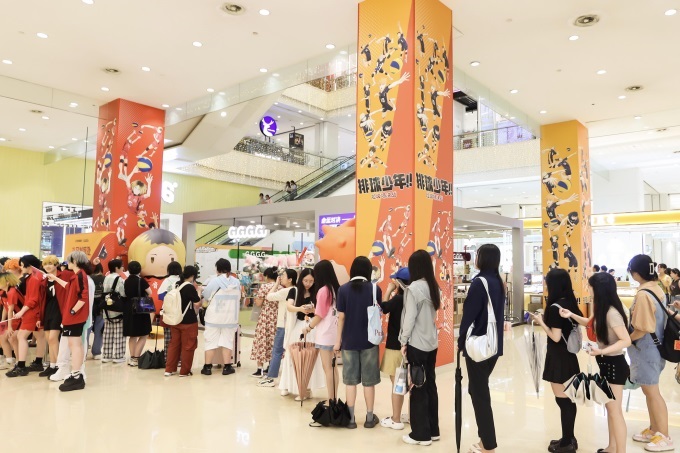 暑假期間,熱血動畫《排球少年!!垃圾場決戰(zhàn)》在國內(nèi)上映,人氣頗高。7月起,排球少年聯(lián)名華中首家GUGU限定快閃店入駐銀泰百貨武漢創(chuàng)意城,為期一個月,成為暑假期間二次元少男少女們的必打卡地。不少粉絲表示線下逛谷子店很快樂很解壓,希望銀泰多引進(jìn)新品牌。