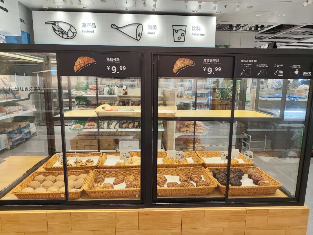 紅餐網(wǎng)觀察到,在廣州部分沃爾瑪、盒馬、宜家等商超的現(xiàn)烤烘焙區(qū),都只有一個(gè)店員負(fù)責(zé)烤制烘焙產(chǎn)品。