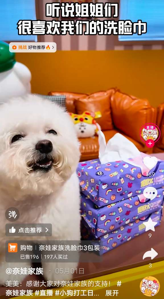 此外,奈娃家族還以寵物豆包作為直播間的時尚模特,吸引了眾多粉絲的目光。