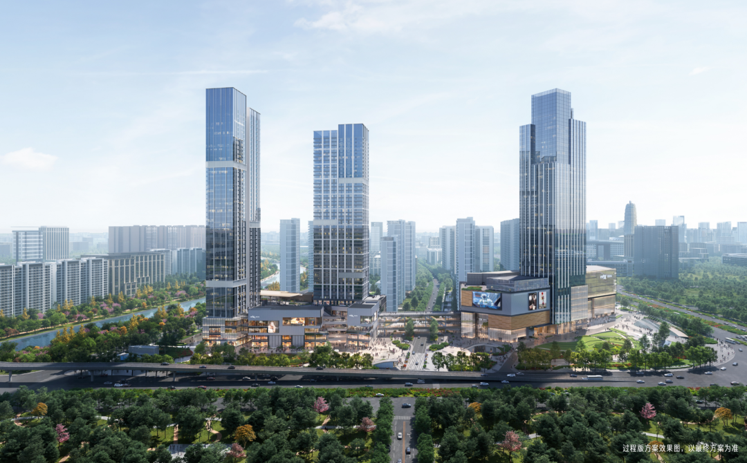 項(xiàng)目總投資100億元,總建筑面積約為33.6萬㎡,是集精奢商業(yè)、甲級商寫、奢適酒店式公寓等多業(yè)態(tài)為一體的大型綜合體項(xiàng)目,其中寫字樓、酒店約24萬㎡,商業(yè)部分約8.9萬㎡。